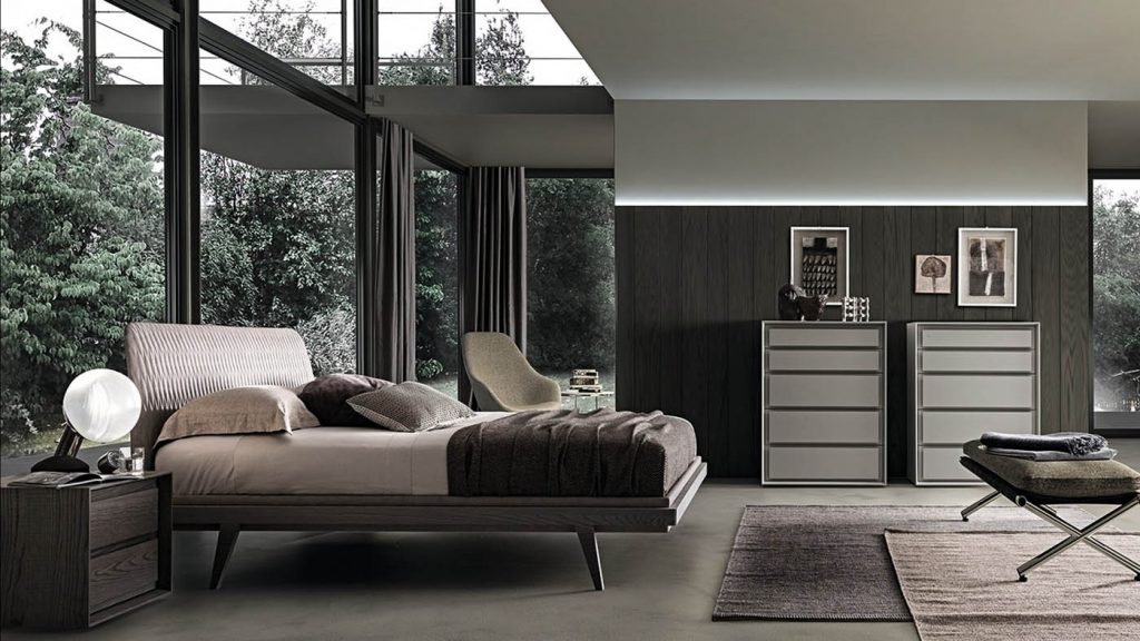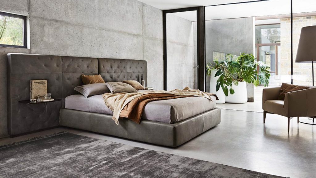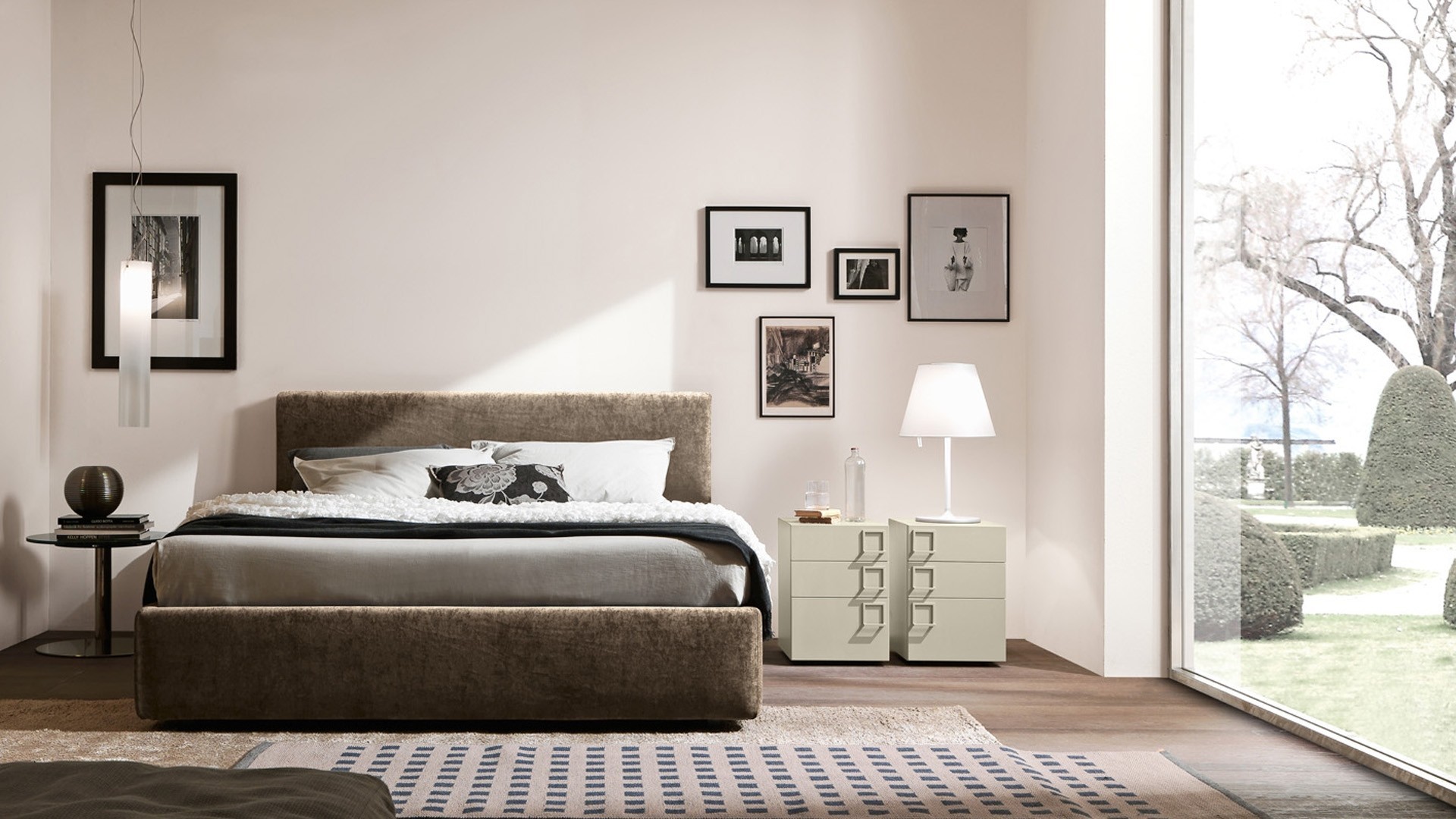 The Dado bed has soft and welcoming lines, characterized by a high, smooth and linear headboard; the tufted version adds character and personality. The frame can be fitted with a storage system which has a special mechanism that raises the bed so that it can be made without bending down. (double movement mechanism).