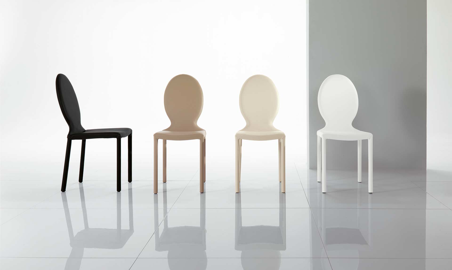 The Katia chair is both classic and modern, it is comfortable thanks to the wide seat. Katia is made of hard polyurethane and has an opening between the backrest and the seat, 4 tubular legs. Also available with mono- or bi-coloured upholstery.