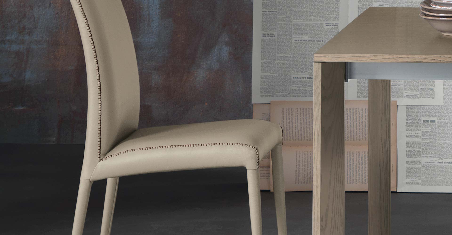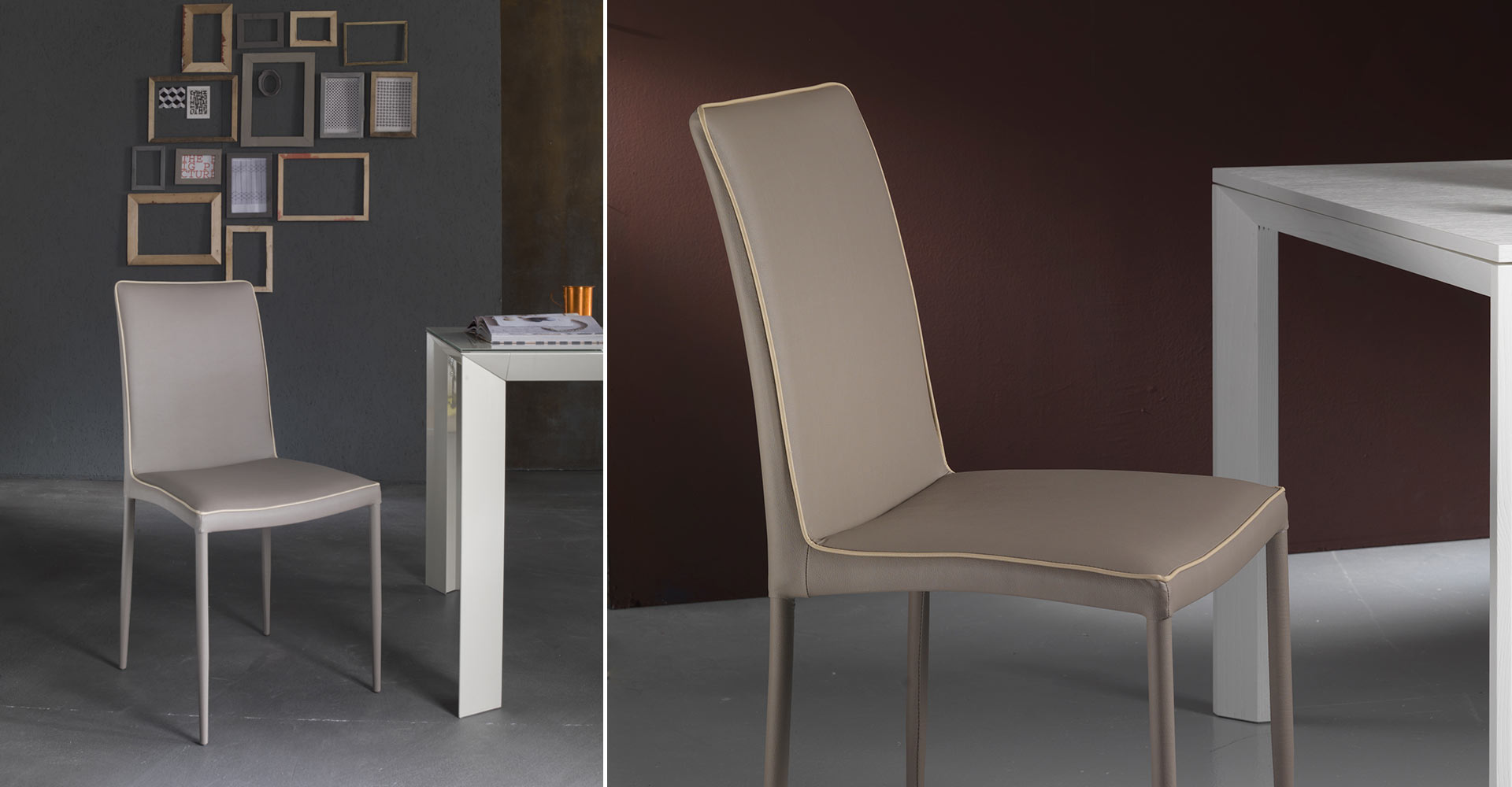 Marta is a modern chair that stands out for its comfort. The flexible backrest and the edge of the seat have piping around the edges. It has a steel structure and a seat with elastic bands. Its classic lines, with a touch of originality given by the piping, make it an elegant, modern chair and, thanks to its versatility, suitable for any environment.