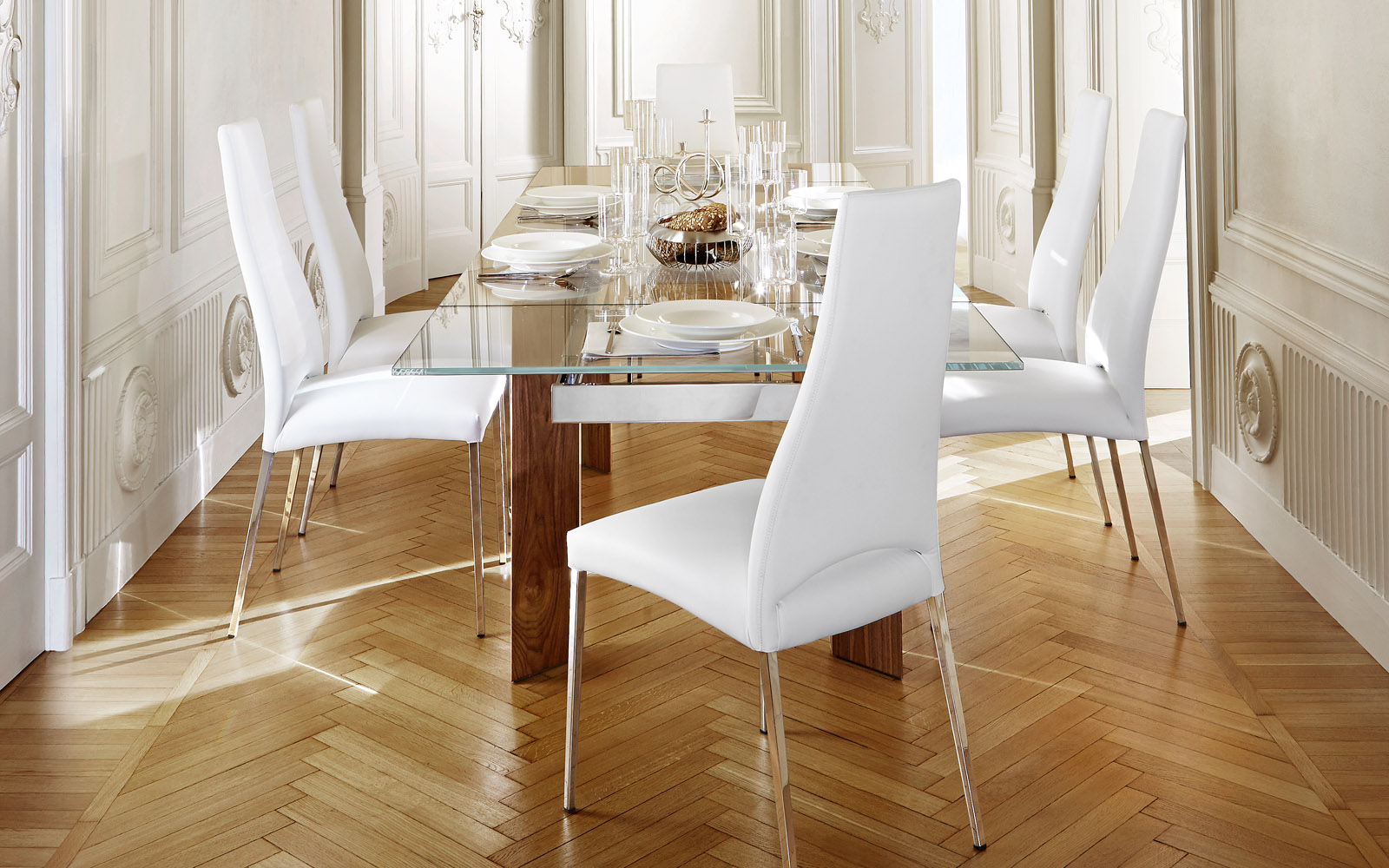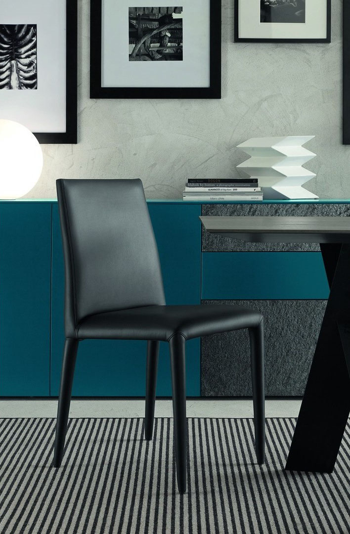 Enveloping, ergonomic, modern, Chloe is a modern design chair with a particularly flexible back, providing a pleasant sensation of comfort. Solid metal frame upholstered in soft leather or faux-leather; elegant legs, designed to give a touch of style to all environments. The Chloe upholstery is not removable.