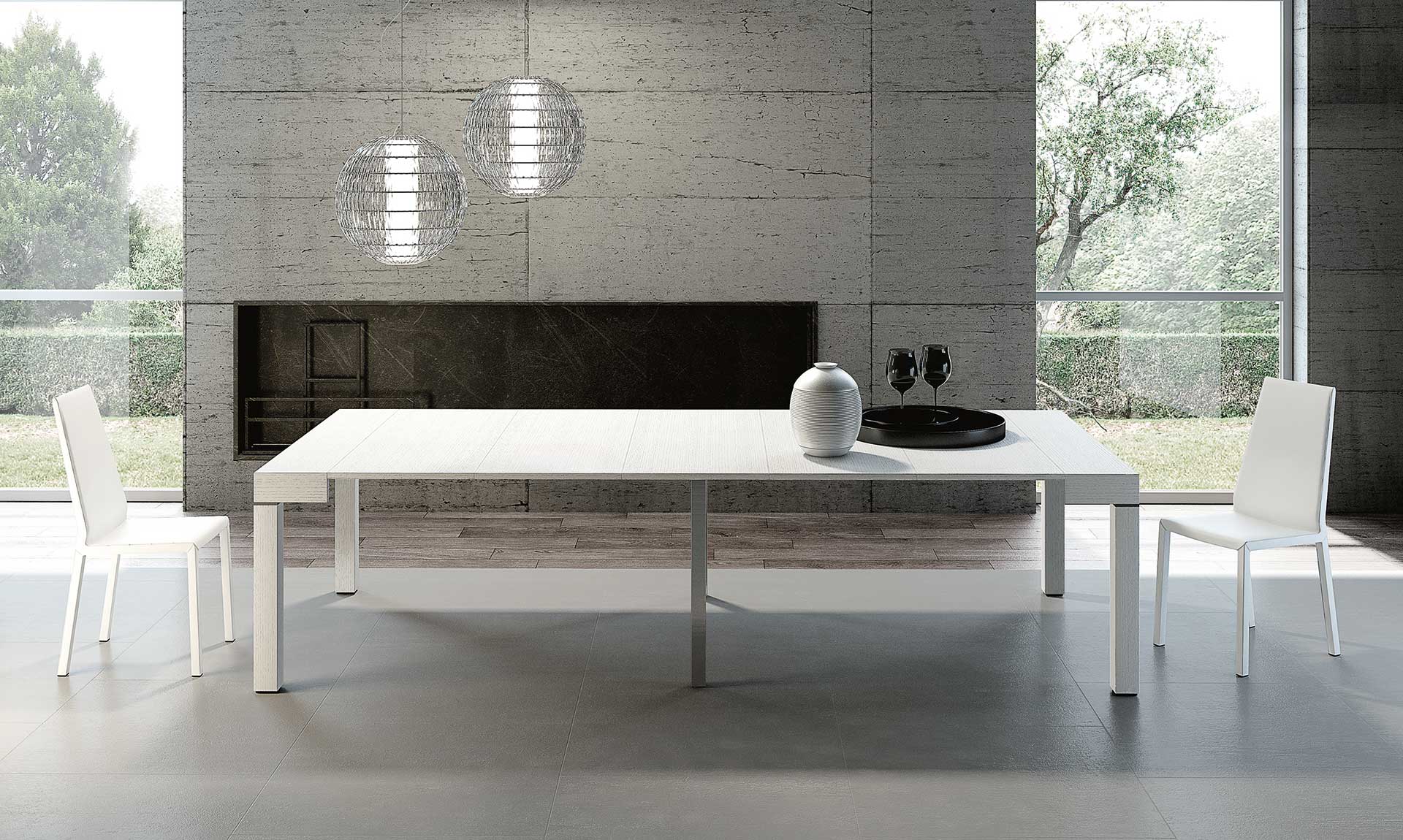 Thanks to the new semiautomatic mechanical opening system, the centre console legs are concealed internally to allow for comfortable seating at the central sides of the table. Not only for small environments. With a single gesture, an incredible transformation takes place: thanks to the modularity of the system, a small console of 50 cm can turn into a table that reaches a maximum length of 3 m!