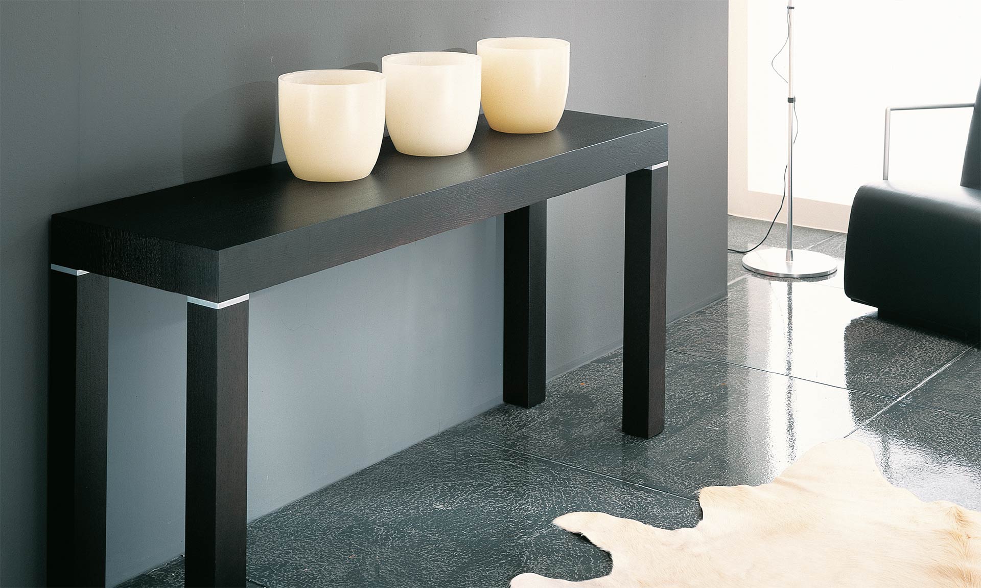 Luxury is a wooden console with legs in chromium-plated steel, the standard finishing is white stained oak. Customized finishes are cherry-stained oak, gray, tobacco, natural, ash, walnut, honey and wenge.