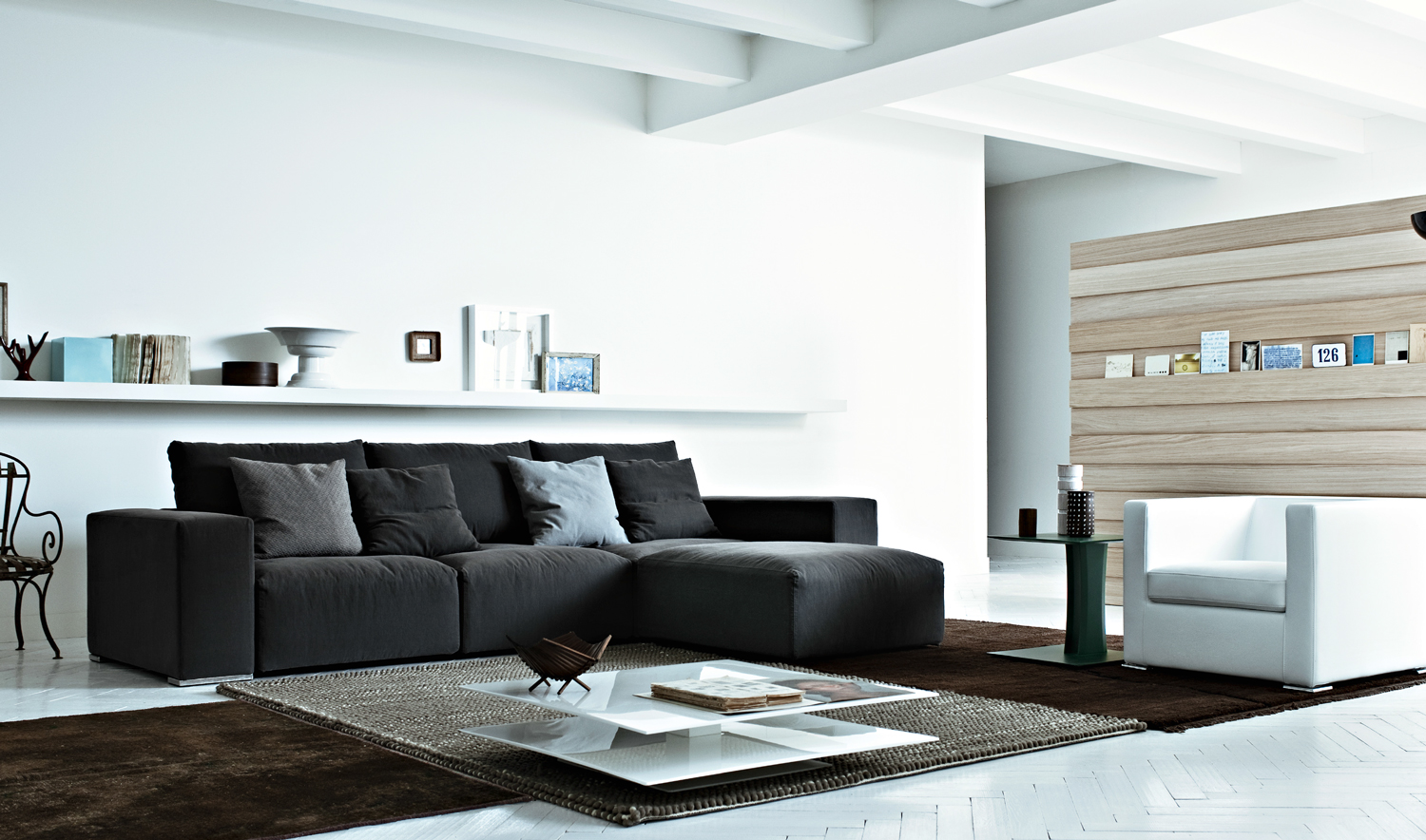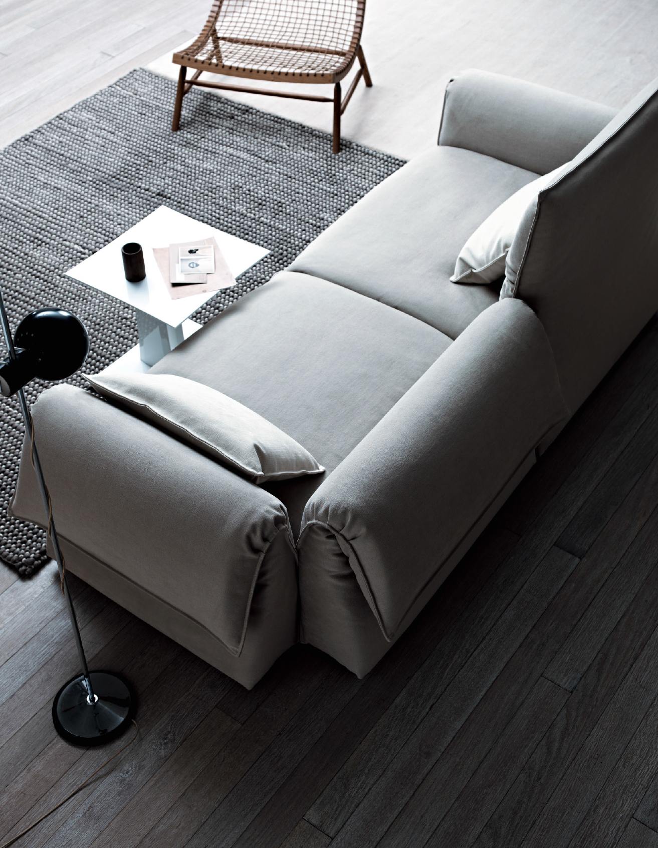 The No Logo model was born with the intent of interpreting the essential shapes of the sofa with a sophisticated yet non-aggressive personality. A model that meets the needs of those who consider simplicity as a goal, beyond fashion and design frenzy.